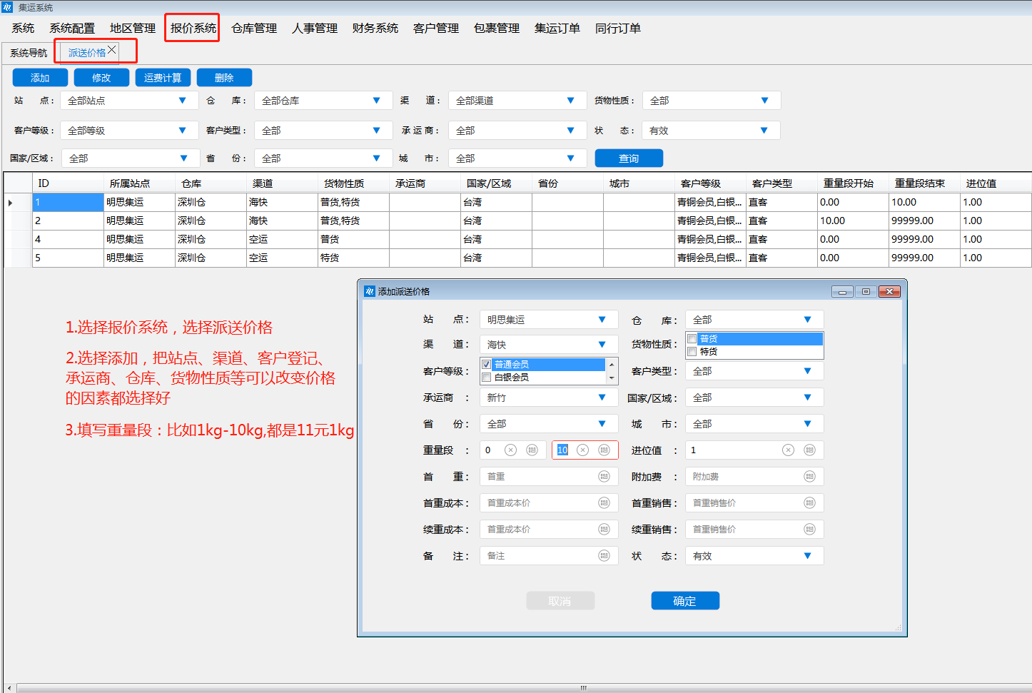 選擇報(bào)價(jià)系統(tǒng),選擇派送價(jià)格