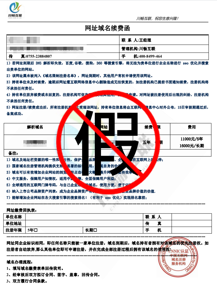 打假川暢互聯(lián)機(jī)構(gòu)域名續(xù)費(fèi)