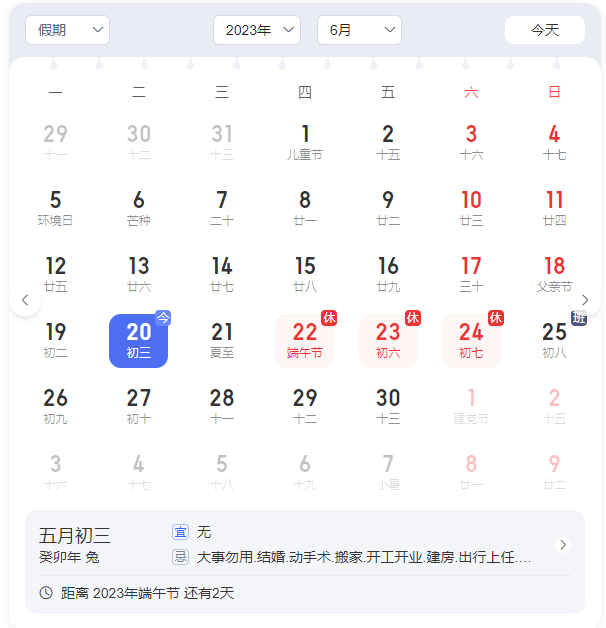 2023年06月22日(周四)放假休息,06月25日(周天)開始恢復(fù)上班。